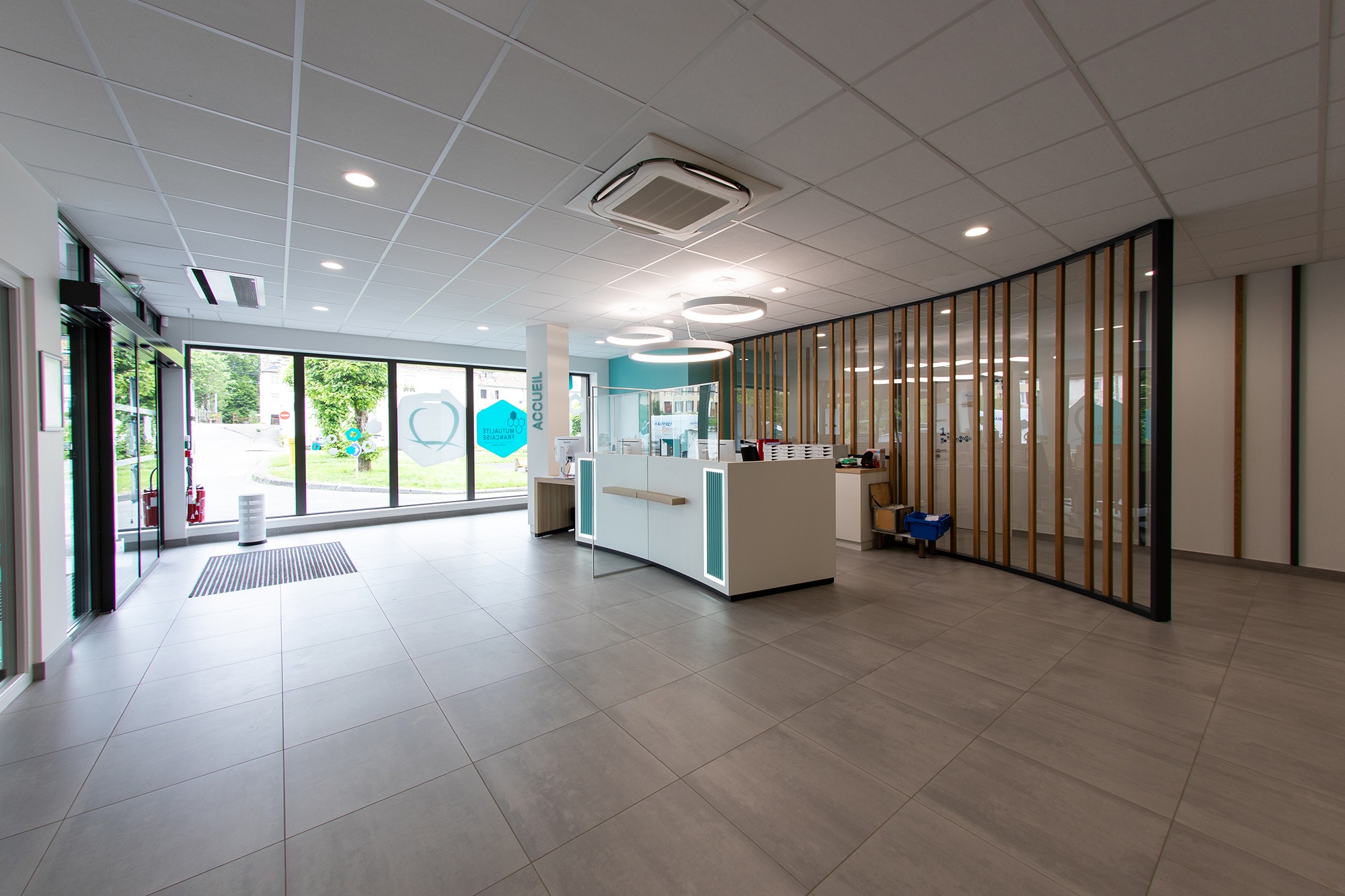 À Héricourt, nous avons accompagné notre client dans un projet d’envergure : la transformation d’un ancien supermarché en trois espaces de santé distincts, dont ce centre dentaire. Respectant le cahier des charges, tant dans les différents espaces demandés que dans l’esthétique du projet global, notre filiale H Ingénierie s’est occupée de la réalisation du projet.