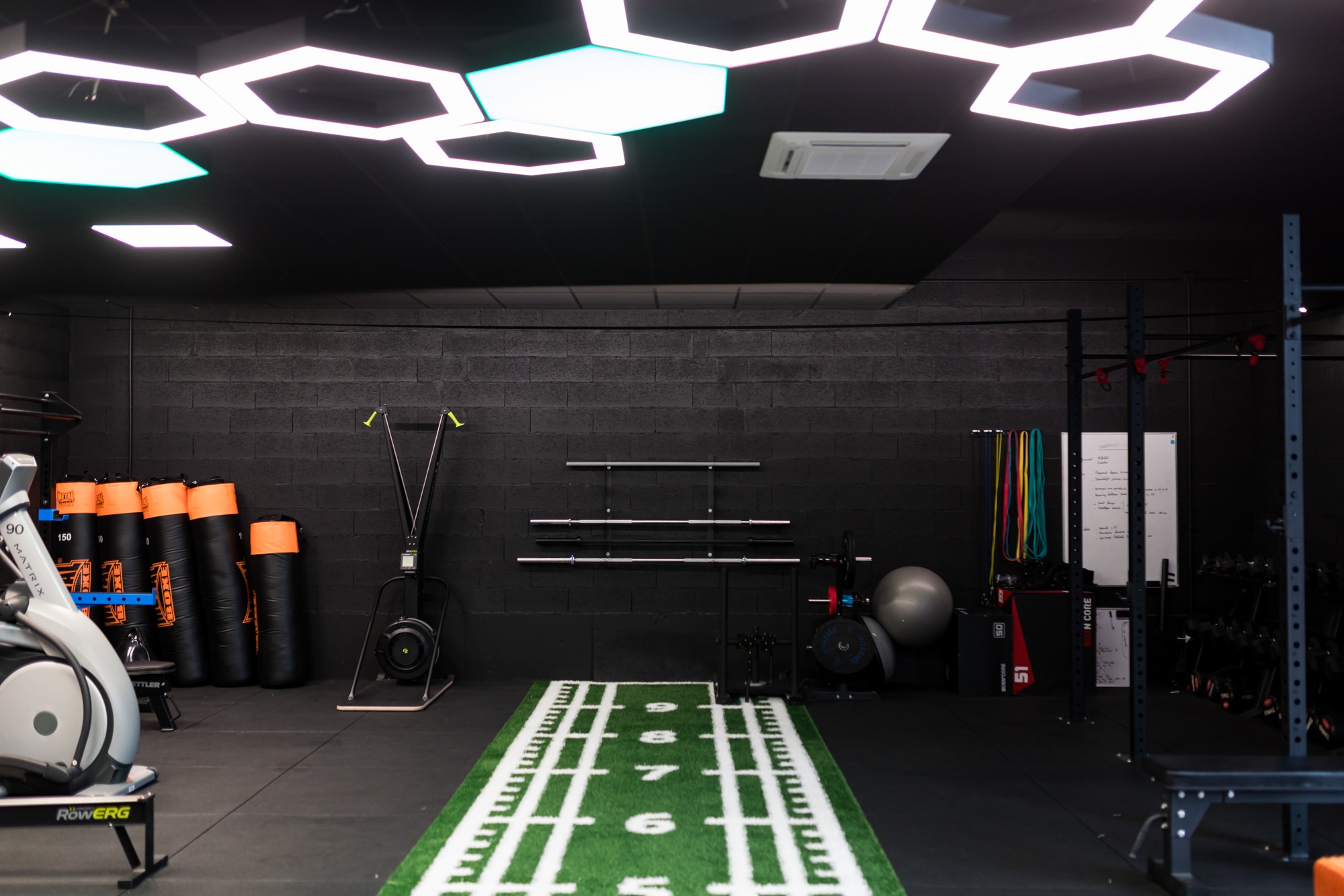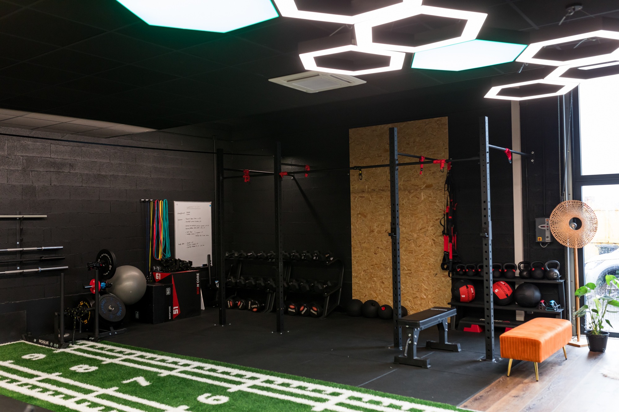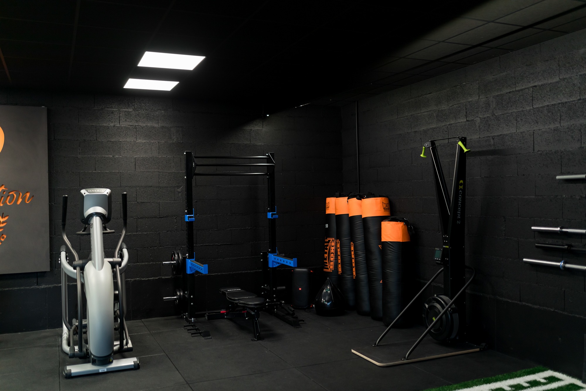Le lieu a été pensé pour proposer une autre approche du sport : plus intime, plus accompagnée, plus humaine. L’organisation des espaces permet aussi bien l’accueil de séances en small group training, volontairement limitées en nombre, que des entraînements en accès libre, toujours encadrés par un coach. Chaque zone a été conçue pour préserver la fluidité, le confort et la sensation d’un espace maîtrisé, sans surcharge ni agitation.